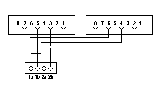 4 Buchsenkontakte Zwei Buchsen mit 8poligem Steckergesicht |