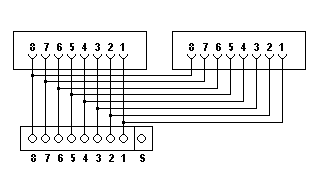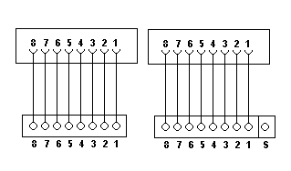 8 Buchsenkontakte Zwei Buchsen mit 8poligem Steckergesicht |